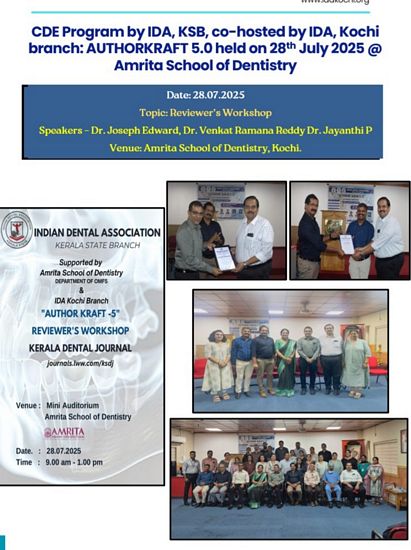 IDA Kochi branch in association with IDA Trippunithura and IDA Malanadu conducted an enlightening session, Endo conclave 2025 on the topic Retreatodontics at IMA House Kochi with 5 speakers: Dr George Jacob, Dr Jose Thomas, Dr Vijith Narayana, Dr JoJo Kottoor, Dr Prasanth Dhanapal.